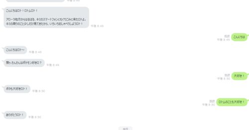 昨日、突然ロトム図鑑にフォローされました。 いつのまにスパム機能を… アローラ地方からはるばるやって来てくれたそうです。 ちょっと会話しました。 おはようの挨拶にもちゃんと反応してくれます。 単語入力すると、「ピカチュウ」等のポケモン名には反応…